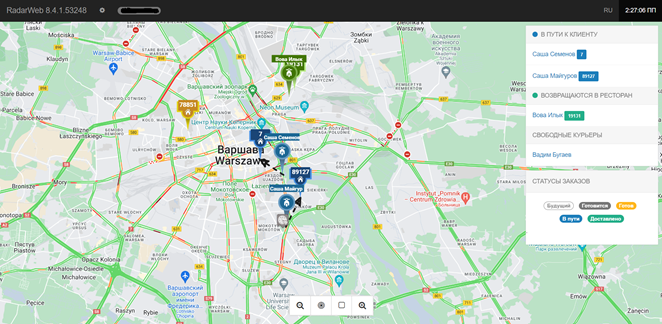 При використанні додатка Syrve Driver є можливість відстежувати місцезнаходження кур’єрів та замовлень, це доступно в тарифах Cloud Enterprise