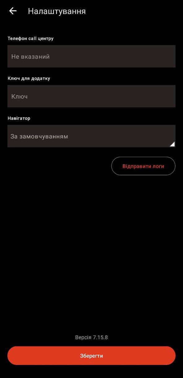 Під час першого запуску Syrve Driver у смартфоні відкривається порожня сторінка налаштувань.