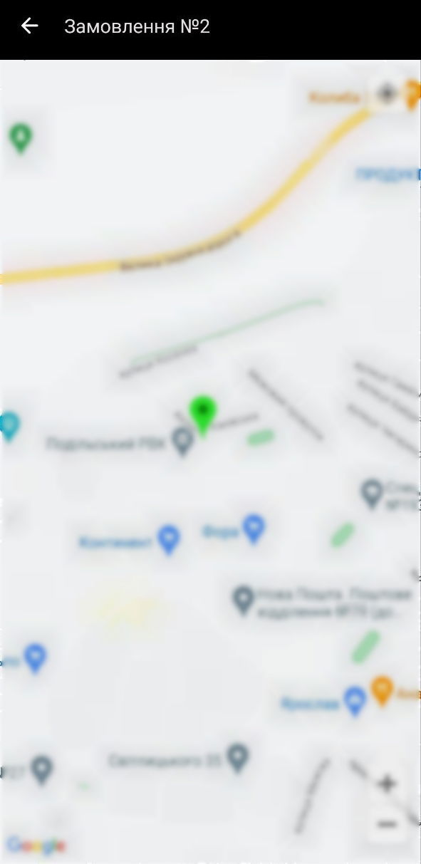 Кур'єр може переглянути адреси всіх своїх замовлень, натиснувши кнопку "На карті".