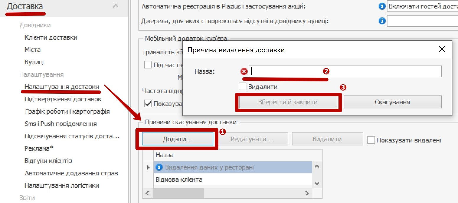 Налаштування Повідомляти про те, що доставку пора готувати визначає, чи буде система сигналізувати про необхідність приготування замовлення, якщо воно вчасно не розпочато.