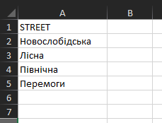 Дані про вулиці містяться в наступних полях імпортованого файлу: