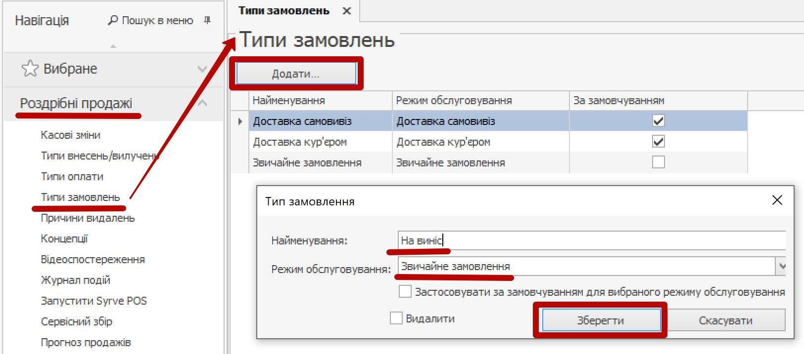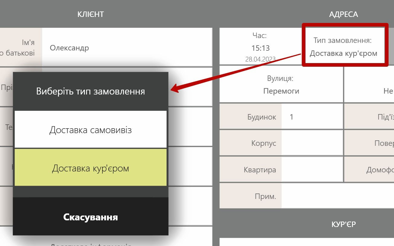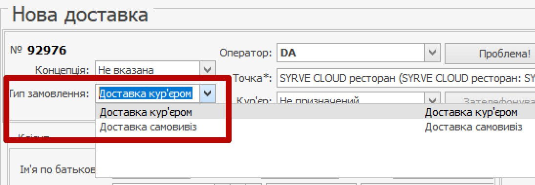 Чи Тип замовлення у картці доставки в Syrve POS:
