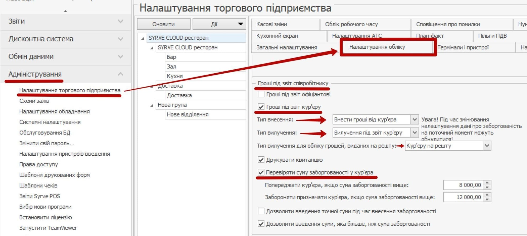 Часто клієнти розплачуються з кур'єрами готівкою. А щоб видати клієнтам решту, на початку робочого дня менеджер видає кур'єрам гроші. В результаті на руках у кур'єрів завжди багато готівки, за допомогою Syrve ці суми можна контролювати.