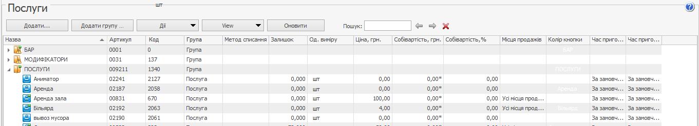 Через Syrve POS можуть бути реалізовані "комплексні" послуги, тобто послуги з модифікаторами, простими або груповими. У цьому разі модифікатори враховуються в акті надання послуг, але не списуються зі складу. Якщо вам необхідно їх списувати, то занесіть послугу в систему як товар або страву без тех-карти і додайте до неї необхідні модифікатори.