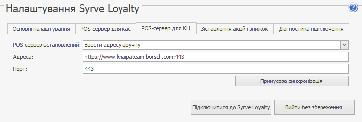 Примітка: параметри конфігураційного файлу syrve-loyalty.config.xml мають вищий пріоритет порівняно з параметрами розташування POS-сервера, вказаними в налаштуваннях Syrve Loyalty в бек-офісі.