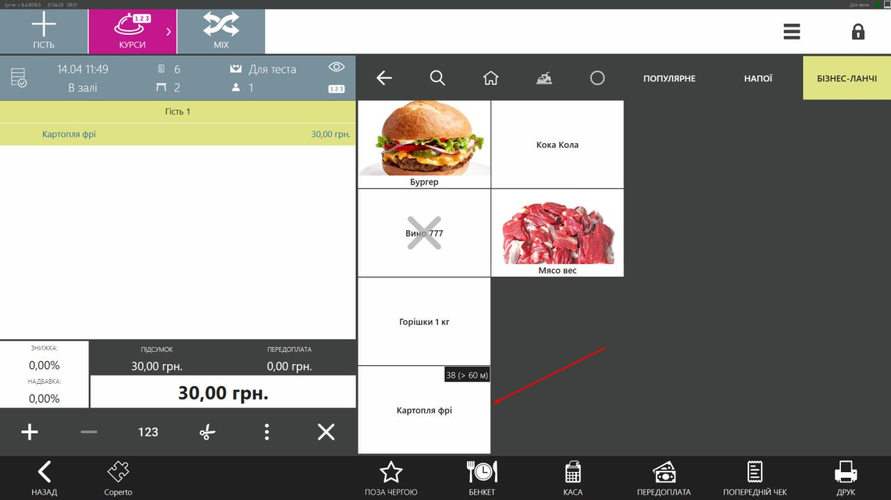 У результаті на кнопці страви відобразиться оновлена кількість страв.