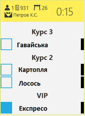 Якщо офіціант розподілив у замовленні страви по курсам, то кухар побачить цю черговість на Кухонному екрані.