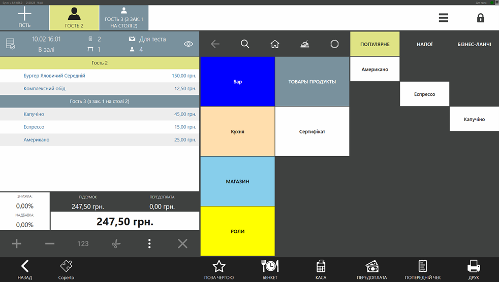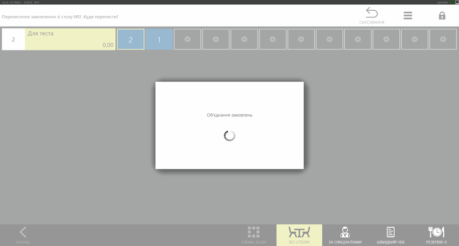 Увага! Ви не можете об'єднати столики, якщо за одним із них роздрукований гостьовий рахунок.